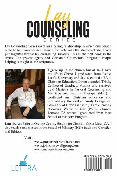 Lay Counseling Series involves a caring relationship in which one person seeks to help another deal more effectively with the stresses of life. I have put together twelve lay counseling subjects. This is the first book in the series: Can psychologists and Christian Counselors Integrate? People helping is taught in the scriptures.