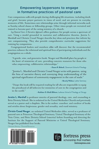 Care companions in congregations support others at multiple levels. They walk with people during challenging life situations, including death and grief; become prayer partners in moments of need; and are present in everyday moments of life. Sometimes care relationships arise through informal networks such as Sunday school classes or fellowship groups. Other times people are recruited and trained to become part of the caring ministry of a church. Lay Pastoral Care: A Narrative Approach offers guidance for people across a spectrum of care. Using a model grounded in narrative and collaborative theories, Joretta L. Marshall and Christie Cozad Neuger describe key ideas and practices that inform lay care companioning. They also provide comprehensive curricular suggestions for training lay companions. Marshall and Neuger build on a commitment to mutual learning, deepening spiritual growth, and collaborative support for people who wish to become care companions. Congregational leaders and members alike will discover that the recommended practices enhance the relational and spiritual lives of participating individuals and the congregation as a whole.