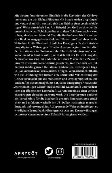 Mit diesem faszinierenden Einblick in die Evolution der Geldsysteme rund um den Globus führt uns Nik Bhatia zu den Ursprüngen und veranschaulicht, weshalb sich das Geld in einer "mehrschichtigen" Weise entwickelt hat. Am Beispiel von Gold zeichnet er die unterschiedlichen Schichten dieser uralten Geldform nach - vom rohen, abgebauten Material über die Goldmünzen bis hin zu den von Banken ausgegebenen Goldzertifikaten.Auf bahnbrechende Weise beschreibt Bhatia ein ähnliches Paradigma für die Entwicklung digitaler Währungen. Bhatias Analyse beginnt im Zeitalter der Renaissance in Florenz mit der Florin-Goldmünze und einer aufkeimenden Bankenkultur, setzt sich mit der Entwicklung des Zentralbankwesens fort und endet mit einer Vision für die Zukunft unseres internationalen Währungssystems. Während sich Zentralbanken auf der ganzen Welt darauf vorbereiten, ihre eigenen Krypto-Konkurrenten auf den Markt zu bringen, veranschaulicht Bhatia, wie die Erfindung von Bitcoin eine seismische Verschiebung des Geldes verursacht und die monetären und kryptographischen Wissenschaften zusammengeführt hat.Seine einzigartige Analyse des "mehrschichtigen Geldes" beleuchtet die Geldmärkte und verdeutlicht der allgemeinen Leserschaft, warum Bitcoin zu einer vertrauenswürdigen globalen Währung wird. Die Leser können dadurch ein Verständnis für die Mechanik unseres Finanzsystems entwickeln und erfahren, weshalb der US-Dollar trotz seines maroden Zustands tief verwurzelt ist. Auf spannende Weise schlussfolgert er, wie digitale Zentralbankwährungen (CBDCs) und Kryptowährungen in unserer neuen monetären Zukunft interagieren werden.