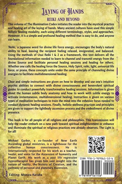 This volume of The Illumination Codex initiates the reader into the mystical practice and healing art of the laying of hands. Many ancient cultures have used this simple holistic healing modality, each using different terminology, styles, and approaches. However, it is a simple and profound healing method that is easy to do, and anyone can learn. 'Reiki,' a Japanese word for divine life force energy, encourages the body's natural ability to heal, leaving the recipient feeling relaxed, invigorated, and balanced. Using the methods of Usui Reiki 1 & 2 as a framework, this text delivers all the foundational information needed to learn to channel and transmit energy from the divine Source and facilitate personal healing sessions and healing for others. Whether one calls the healing force the Source, Holy Spirit, reiki, light, universal life force, or prana, these concepts unite under the same principle of channeling divine energies to facilitate multidimensional healing. Clear and simple instructions are given on how to develop and use one's intuitive psychic abilities to connect with divine consciousness and benevolent spiritual guides to conduct powerfully transformative healing sessions. Information is given about the human subtle body anatomy and how to work with subtle energy to activate instantaneous, multidimensional healing. Instruction is given on various types of meditation techniques to train the mind into the cohesive focus needed to conduct dynamic healing sessions. Finally, holistic wellness practices and principles are given to support the lightbody ascension process and the embodiment of divine presence. This book is for all people of all religions and philosophies. This transmission will help the reader embark on a new path toward spiritual enlightenment or enhance and illuminate the spiritual or religious practices one already observes. The Light is for all! How can I have a direct experience with divine energy and consciousness? How can I become more intuitive and develop healing and psychic gifts? How can I bring the divine into my daily life? How can I grow in my relationship with myself and the Divine? How can I heal my body and mind and evolve into my highest expression? How can I grow in my sense of purpose and higher calling? How can I help others heal and accelerate awakening in my community?