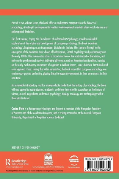 This first volume, Laying the Foundations of Independent Psychology, provides a detailed exploration of the origins and development of European psychology. The book examines psychology's beginnings as an independent discipline in the late 19th century through to the emergence of the dominant new schools of behaviorism, Gestalt psychology and psychoanalysis in the early 1900s. This volume also offers a broad overview of the early impact of Darwinism, not only on the psychological study of individual differences and on American functionalism, but also on the early evolutionary treatments of cognition in William James, James Baldwin, Ernst Mach and even Sigmund Freud. Taking this wider perspective, the book shows that European psychology was continuously present and active, placing these European developments in their own context in their own time.