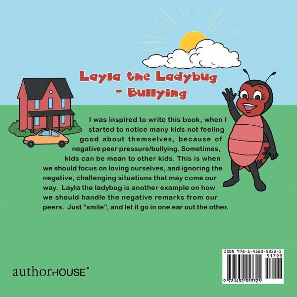 I was inspired to write this book, when I started to notice many kids not feeling good about themselves, because of negative peer pressure/bullying. Sometimes, kids can be mean to other kids. This is when we should focus on loving ourselves, and ignoring the negative, challenging situations that may come our way. Layla the ladybug is another example on how we should handle the negative remarks from our peers. Just "smile", and let it go in one ear out the other.