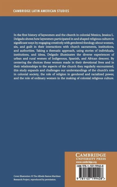 In the first history of laywomen and the church in colonial Mexico, Jessica L. Delgado shows how laywomen participated in and shaped religious culture in significant ways by engaging creatively with gendered theology about women, sin, and guilt in their interactions with church sacraments, institutions, and authorities. Taking a thematic approach, using stories of individuals, institutions, and ideas, Delgado illuminates the diverse experiences of urban and rural women of Indigenous, Spanish, and African descent. By centering the choices these women made in their devotional lives and in their relationships to the aspects of the church they regularly encountered, this study expands and challenges our understandings of the church's role in colonial society, the role of religion in gendered and racialized power, and the role of ordinary women in the making of colonial religious culture.