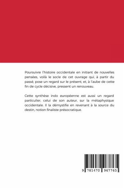 Poursuivre l'histoire occidentale en initiant de nouvelles pensées, voilà le socle de cet ouvrage qui, à partir du passé, pose un regard sur le présent, et, à l'aube de cette fin de cycle décisive, pressent un renouveau. Cette synthèse indo européenne est aussi un regard particulier, celui de son auteur, sur la métaphysique occidentale. Il la démystifie en revenant à la source du destin, notion finaliste présocratique.