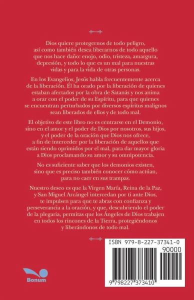 Dios quiere protegernos de todo peligro, asi¿ como tambie¿n desea liberarnos de todo aquello que nos hace dan¿o: enojo, odio, tristeza, amargura, depresiön, y todo lo que es un mal para nuestras vidas y para la vida de otras personas. En los Evangelios, Jesüs habla frecuentemente acerca de la liberaciön. E¿l ha orado por la liberaciön de quienes estaban afectados por la obra de Satanäs y nos anima a orar con el poder de su Espi¿ritu, para que quienes se encuentran perturbados por diversos espi¿ritus malignos sean liberados de ellos y de todo mal. El objetivo de este libro no es centrarse en el Demonio, sino en el amor y el poder de Dios por nosotros, sus hijos, y el poder de la oración que Dios nos ofrece, a fin de interceder por la liberación de aquellos que están siendo oprimidos por el mal, para dar mayor gloria a Dios proclamando su amor y su omnipotencia. No es suficiente saber que los demonios existen, sino que es preciso también conocer cómo actúan, para no caer en sus trampas. Nuestro deseo es que la Virgen María, Reina de la Paz, y San Miguel Arcángel intercedan por ti ante Dios, te impulsen para que te abras con confianza y perseverancia a la oración, y que, descubriendo el poder de la plegaria, permitas que los Ángeles de Dios trabajen en todos los rincones de la Tierra, protegiéndonos y liberándonos de todo mal. EDITORIAL BONUM ARGENTINA Este libro contiene el desarrollo de los siguientes temas entre otros: ¿Quie¿nes son los demonios? Cuando las cosas buenas no se concretan. Combatiendo la soberbia. Satanäs y las ataduras con las cosas materiales. El instinto de trascendencia. La tentación. Las maldiciones y los maleficios. Con este libro aprenderá oraciones para alejar el mal con ayuda divina. ¡Adquiera ya este libro y comience a aprender sobre esta faceta de la espiritualidad! exorcismo, expulsión de demonios, oración de liberación, maleficios y bendiciones, líbranos del mal, posesiones, Gustavo Jamut.