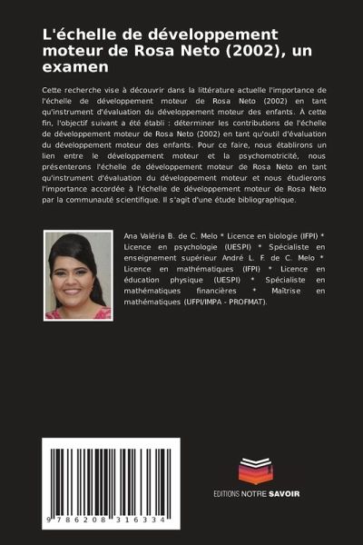 Cette recherche vise à découvrir dans la littérature actuelle l'importance de l'échelle de développement moteur de Rosa Neto (2002) en tant qu'instrument d'évaluation du développement moteur des enfants. À cette fin, l'objectif suivant a été établi : déterminer les contributions de l'échelle de développement moteur de Rosa Neto (2002) en tant qu'outil d'évaluation du développement moteur des enfants. Pour ce faire, nous établirons un lien entre le développement moteur et la psychomotricité, nous présenterons l'échelle de développement moteur de Rosa Neto en tant qu'instrument d'évaluation du développement moteur et nous étudierons l'importance accordée à l'échelle de développement moteur de Rosa Neto par la communauté scientifique. Il s'agit d'une étude bibliographique.