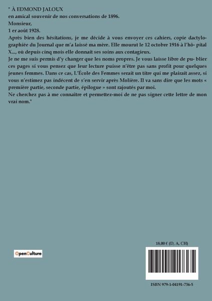 L'École des femmes est un roman d'André Gide publié en avril 1929 dans La Nouvelle Revue française des éditions Gallimard. Il constitue le premier tome d'un triptyque composé de Robert (1930) et Geneviève (1936), qui offrent des points de vue familiaux différents sur les mêmes événements. Écriture et publication du roman La composition du roman fut un long processus pour André Gide, qui l'abandonnera et y reviendra à de nombreuses reprises entre juin 1919, date des premiers jets, et 1929 date de la première publication1. À un certain point, ce livre est devenu une ¿uvre de commande, financée par la revue littéraire américaine Forum. En effet, Forum donne en une avance de 1 500 dollars à Gide pour qu'il continue le travail et réserve la prépublication ¿ après traduction quasi simultanée en anglais par Dorothy Bussy ¿ à la revue américaine. Le personnage du mari d'Évelyne est directement inspiré à Gide par une bonne connaissance avec qui il entretient une relation ambiguë, faite d'intérêt, de jugement féroce et de ranc¿urs financières, l'homme d'affaires agricoles et politiques Eugène Rouart (1872-1936), futur sénateur de Haute-Garonne. Évelyne, par conséquent s'inspire de l'épouse d'Eugène Rouart : Yvonne Lerolle, fille d'Henry Lerolle. Achevé en 1929, L'École des femmes est initialement publié en trois épisodes dans les numéros de janvier, février et mars 1929 de Forum sous le titre The School of Wives. Le roman est ensuite publié en français dans La Revue de Paris du 15 mars et 1er avril 1929, puis se voit édité en intégralité au cours de la même année dans les éditions de la NRF, par Gaston Gallimard. En janvier 1930 paraît, également à la NRF, une édition augmentée de sa suite Robert.