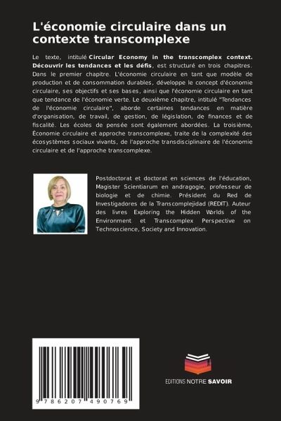 Le texte, intitulé Circular Economy in the transcomplex context. Découvrir les tendances et les défis, est structuré en trois chapitres. Dans le premier chapitre. L'économie circulaire en tant que modèle de production et de consommation durables, développe le concept d'économie circulaire, ses objectifs et ses bases, ainsi que l'économie circulaire en tant que tendance de l'économie verte. Le deuxième chapitre, intitulé "Tendances de l'économie circulaire", aborde certaines tendances en matière d'organisation, de travail, de gestion, de législation, de finances et de fiscalité. Les écoles de pensée sont également abordées. La troisième, Économie circulaire et approche transcomplexe, traite de la complexité des écosystèmes sociaux vivants, de l'approche transdisciplinaire de l'économie circulaire et de l'approche transcomplexe.