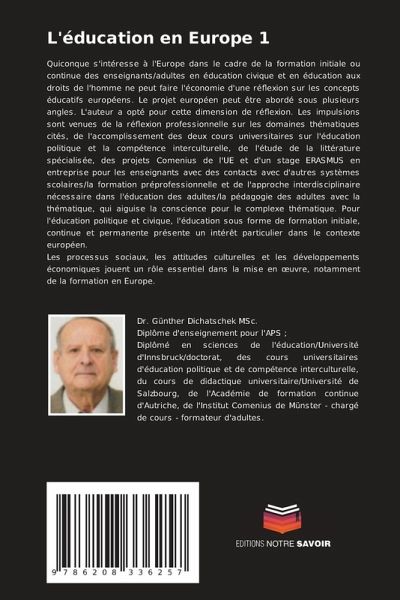 Quiconque s'intéresse à l'Europe dans le cadre de la formation initiale ou continue des enseignants/adultes en éducation civique et en éducation aux droits de l'homme ne peut faire l'économie d'une réflexion sur les concepts éducatifs européens. Le projet européen peut être abordé sous plusieurs angles. L'auteur a opté pour cette dimension de réflexion. Les impulsions sont venues de la réflexion professionnelle sur les domaines thématiques cités, de l'accomplissement des deux cours universitaires sur l'éducation politique et la compétence interculturelle, de l'étude de la littérature spécialisée, des projets Comenius de l'UE et d'un stage ERASMUS en entreprise pour les enseignants avec des contacts avec d'autres systèmes scolaires/la formation préprofessionnelle et de l'approche interdisciplinaire nécessaire dans l'éducation des adultes/la pédagogie des adultes avec la thématique, qui aiguise la conscience pour le complexe thématique. Pour l'éducation politique et civique, l'éducation sous forme de formation initiale, continue et permanente présente un intérêt particulier dans le contexte européen.Les processus sociaux, les attitudes culturelles et les développements économiques jouent un rôle essentiel dans la mise en oeuvre, notamment de la formation en Europe.