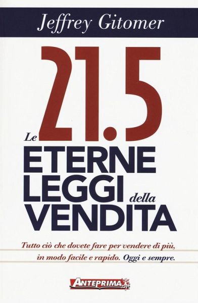 Jeffrey Gitomer è il nome di riferimento nel campo della vendita, in tutto il mondo. I suoi milioni di lettori sono tanto numerosi quanto appassionati e, soprattutto, fedeli. Il principio di fondo del suo metodo infallibile è semplice e... paradossale: la gente adora comprare, eppure vendere non è affatto un gioco da ragazzi. Pochissimi sono dei venditori nati, spiega l'autore, ma con i consigli giusti e una costante applicazione tutti possono diventare dei professionisti affermati, con più del 90% di successi assicurati. Gitomer ha raccolto in questo agile manuale il meglio della sua pluriennale esperienza sul campo - con clienti quali IBM, Coca-Cola, Carlsberg, BMW, Time Warner, GlaxoSmithKline, Caterpillar, Verizon, Hilton, tra gli altri - e l'ha condensata in "21.5 eterne leggi della vendita", chiare, semplici, infallibili: trucchi, segreti, malizie, accorgimenti, idee, strategie che promettono di far impennare le performance di ogni venditore in pochissimo tempo. Insomma, questo è un libro da tenere sempre a portata di mano, pronto all'uso, divertentissimo da leggere e capace di appassionare come un racconto. Prima ancora di rendersene conto, grazie alle "eterne leggi della vendita", chiunque diventerà un venditore eccezionale! Das Urheberrecht an bibliographischen und produktbeschreibenden Daten und an den bereitgestellten Bildern liegt bei Informazioni Editoriali, I.E. S.r.l., oder beim Herausgeber oder demjenigen, der die Genehmigung erteilt hat. Alle Rechte vorbehalten.