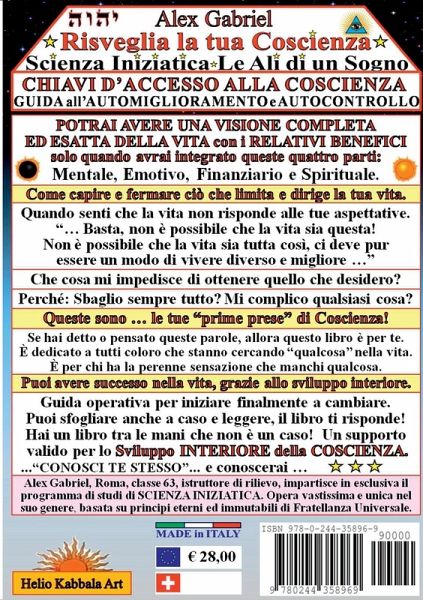 Questo libro e rivolto a chi sta cercando "qualcosa" nella vita. Un qualcosa di profondo e misterioso che molti non sanno spiegarsi. E per tutti quelli che hanno la sensazione che manchi sempre qualcosa e, nonostante i vari tentativi fatti, nulla e stato finora appagante. Un libro semplice e di una profondita stravolgente, in cui sono offerti i primi strumenti per accedere alle proprie potenzialita celesti, che al momento sono bloccate. Ora si e sollecitati a esprimerle, in modo che la vita potra essere serena e pienamente realizzata. Senza aver prima risolto le questioni interiori, nella vita sara difficile andare avanti, si vivra in un perenne stato di blocco, crisi totale e problemi ricorrenti. Occorre liberarsi prima da queste catene, per poi iniziare a dirigere la propria vita. Quante volte ti sei trovato a dire: "Basta, non e possibile che la vita sia questa, non e possibile che la vita sia tutta cosi, ci deve pur essere un modo diverso ..." Se hai detto queste parole, allora il libro e per te.