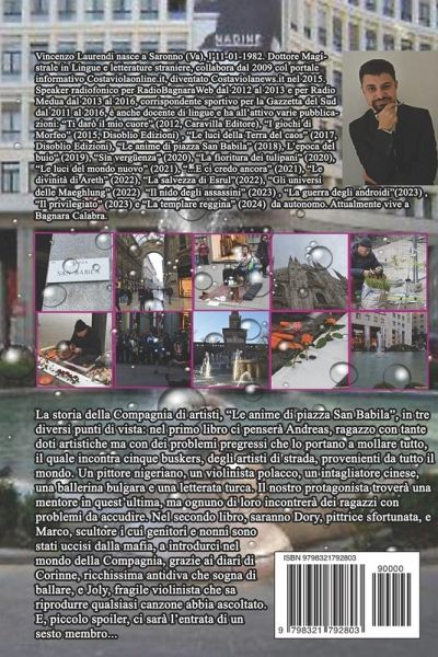 La storia della Compagnia di artisti, "Le anime di piazza San Babila", in tre diversi punti di vista: nel primo libro ci penserà Andreas, ragazzo con tante doti artistiche ma con dei problemi pregressi che lo portano a mollare tutto, il quale incontra cinque buskers, degli artisti di strada, provenienti da tutto il mondo. Un pittore nigeriano, un violinista polacco, un intagliatore cinese, una ballerina bulgara e una letterata turca. Il nostro protagonista troverà una mentore in quest'ultima, ma ognuno di loro incontrerà dei ragazzi con problemi da accudire. Nel secondo libro, saranno Dory, pittrice sfortunata, e Marco, scultore i cui genitori e nonni sono stati uccisi dalla mafia, a introdurci nel mondo della Compagnia, grazie ai diari di Corinne, ricchissima antidiva che sogna di ballare, e Joly, fragile violinista che sa riprodurre qualsiasi canzone abbia ascoltato. E, piccolo spoiler, ci sarà l'entrata di un sesto membro...