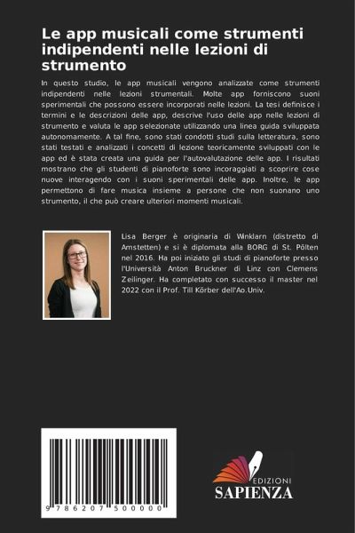 In questo studio, le app musicali vengono analizzate come strumenti indipendenti nelle lezioni strumentali. Molte app forniscono suoni sperimentali che possono essere incorporati nelle lezioni. La tesi definisce i termini e le descrizioni delle app, descrive l'uso delle app nelle lezioni di strumento e valuta le app selezionate utilizzando una linea guida sviluppata autonomamente. A tal fine, sono stati condotti studi sulla letteratura, sono stati testati e analizzati i concetti di lezione teoricamente sviluppati con le app ed è stata creata una guida per l'autovalutazione delle app. I risultati mostrano che gli studenti di pianoforte sono incoraggiati a scoprire cose nuove interagendo con i suoni sperimentali delle app. Inoltre, le app permettono di fare musica insieme a persone che non suonano uno strumento, il che può creare ulteriori momenti musicali.