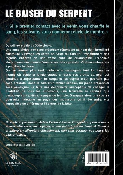« Si le premier contact avec le venin vous chauffe le sang, les suivants vous donneront envie de mordre. » Deuxième moitié du XXIe siècle. Une arme biologique sans précédent répondant au nom de « brouillard émeraude » ravage les côtes de l¿Asie du Sud-Est, transformant des régions entières en une vaste zone de quarantaine. L'enclave abandonnée aux mains d'une armée désorganisée s¿enfonce alors peu à peu dans le chaos. Quinze années plus tard, violence et sauvagerie font loi dans un monde où seule la jungle vorace a repris ses droits. La peur qui continue d¿empoisonner les corps et les esprits n¿est pourtant pas sans antidote. Dans la cale d¿un tanker échoué, un jeune braconnier sans envergure va faire une découverte susceptible de changer le quotidien de tous les survivants, une trouvaille si capitale que beaucoup sont prêts à la payer de leur vie. S¿engage alors une course poursuite haletante en pays des moussons où il deviendra vite impossible de différencier l¿homme de la bête.