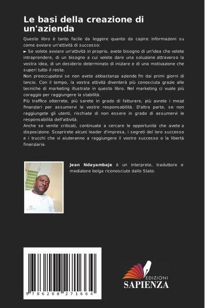 Questo libro è tanto facile da leggere quanto da capire. informazioni su come avviare un'attività di successo:¿ Se volete avviare un'attività in proprio, avete bisogno di un'idea che volete intraprendere, di un bisogno a cui volete dare una soluzione attraverso la vostra idea, di un desiderio determinato di iniziare e di una motivazione che superi tutto il resto.Non preoccupatevi se non avete abbastanza aziende fin dai primi giorni di lancio. Con il tempo, la vostra attività diventerà più conosciuta grazie alle tecniche di marketing illustrate in questo libro. Nel marketing ci vuole più coraggio per raggiungere la stabilità.Più traffico otterrete, più sarete in grado di fatturare, più avrete i mezzi finanziari per assumervi le vostre responsabilità. D'altra parte, se non raggiungete gli utenti, rischiate di non essere in grado di assumervi le responsabilità dell'attività.Anche se venite criticati, continuate a cercare le opportunità che avete a disposizione. Scoprirete alcuni leader d'impresa, i segreti del loro successo e i trucchi che vi aiuteranno a raggiungere il vostro successo o la libertà finanziaria.
