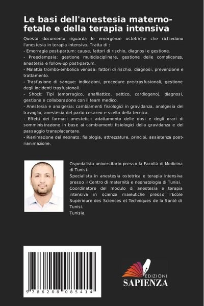 Questo documento riguarda le emergenze ostetriche che richiedono l'anestesia in terapia intensiva. Tratta di :- Emorragia post-partum: cause, fattori di rischio, diagnosi e gestione.- Preeclampsia: gestione multidisciplinare, gestione delle complicanze, anestesia e follow-up post-partum.- Malattia trombo-embolica venosa: fattori di rischio, diagnosi, prevenzione e trattamento.- Trasfusione di sangue: indicazioni, procedure pre-trasfusionali, gestione degli incidenti trasfusionali.- Shock: Tipi (emorragico, anafilattico, settico, cardiogeno), diagnosi, gestione e collaborazione con il team medico.- Anestesia e analgesia: cambiamenti fisiologici in gravidanza, analgesia del travaglio, anestesia del parto cesareo e scelta della tecnica.- Effetti dei farmaci anestetici: adattamento delle dosi e degli orari di somministrazione in base ai cambiamenti fisiologici della gravidanza e del passaggio transplacentare.- Rianimazione del neonato: fisiologia, attrezzature, principi, assistenza post-rianimazione.