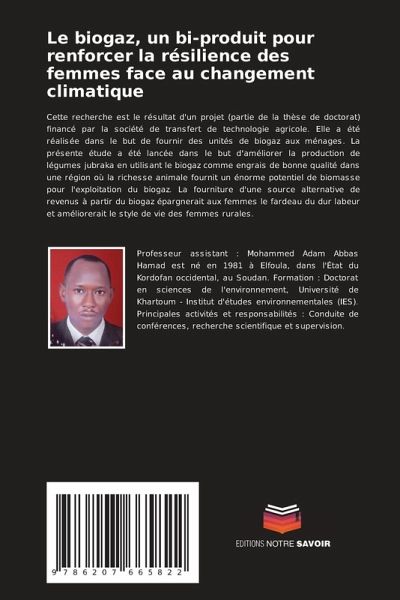 Cette recherche est le résultat d'un projet (partie de la thèse de doctorat) financé par la société de transfert de technologie agricole. Elle a été réalisée dans le but de fournir des unités de biogaz aux ménages. La présente étude a été lancée dans le but d'améliorer la production de légumes jubraka en utilisant le biogaz comme engrais de bonne qualité dans une région où la richesse animale fournit un énorme potentiel de biomasse pour l'exploitation du biogaz. La fourniture d'une source alternative de revenus à partir du biogaz épargnerait aux femmes le fardeau du dur labeur et améliorerait le style de vie des femmes rurales.