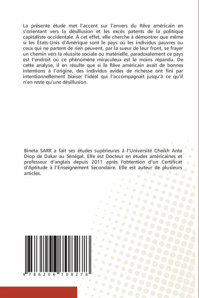 La présente étude met l'accent sur l'envers du Rêve américain en s'orientant vers la désillusion et les excès patents de la politique capitaliste occidentale. À cet effet, elle cherche à démontrer que même si les États-Unis d'Amérique sont le pays où les individus pauvres ou ceux qui ne partent de rien peuvent, par la sueur de leur front, se frayer un chemin vers la réussite sociale ou matérielle, paradoxalement ce pays est l'endroit où ce phénomène miraculeux est le moins répandu. De cette analyse, il en résulte que si le Rêve américain avait de bonnes intentions à l'origine, des individus avides de richesse ont fini par intentionnellement biaiser l'idéal qui l'accompagnait jusqu'à ce qu'il n'en reste qu'une désillusion.