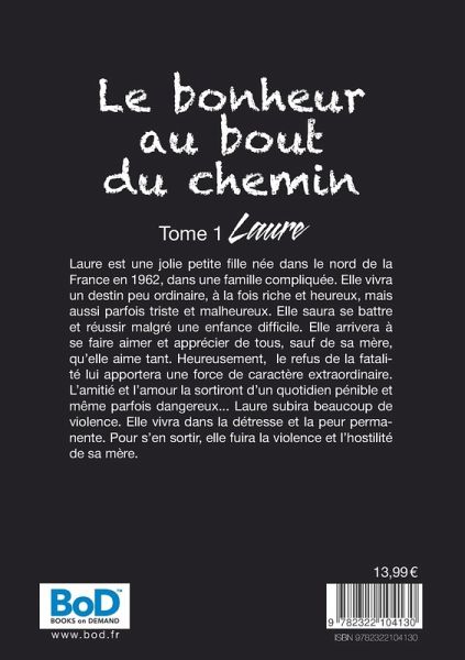 Ce récit est l'histoire de Laure, une jolie petite fille née dans le nord de la France en mille neuf cent soixante deux, dans une famille compliquée. Elle aura une destinée peu ordinaire, à la fois riche et heureuse, mais aussi parfois triste et malheureuse. Elle saura se battre et réussir malgré une enfance difficile. Elle arrivera à se faire aimer et apprécier de tous, sauf de sa mère, qu'elle aime tant. Heureusement, le refus de la fatalité lui apportera une force de caractère extraordinaire. L'amitié et l'amour la sortiront d'un quotidien pénible et même parfois dangereux... Laure subira beaucoup de violence. Elle vivra dans la détresse et la peur permanente. Pour s'en sortir, elle fuira la violence et l'hostilité de sa mère. Son destin lui permettra aussi de vivre des moments merveilleux et de faire des rencontres surprenantes.
