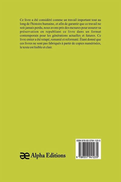 Le Canapé couleur de feu, un livre classique et rare qui a été considéré comme essentiel tout au long de l'histoire de l'humanité, pour que cet ouvrage ne soit jamais oublié, nous chez Alpha Editions avons fait des efforts pour sa préservation en rééditant ce livre dans un format moderne pour les générations présentes et futures. Tout ce livre a été reformaté, retapé et conçu. Ces livres ne sont pas constitués de copies numérisées de leur ¿uvre originale et le texte est donc clair et lisible.
