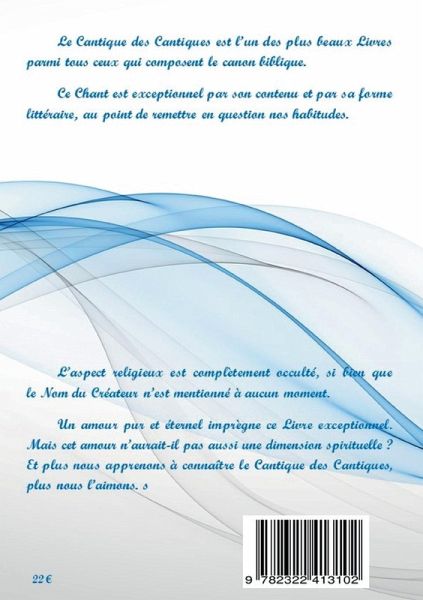 Cet ouvrage contient une traduction entièrement nouvelle du Cantique des Cantiques, avec de nombreux commentaires .Sur la page de droite figure le Texte hébreu avec les voyelles et les accents de cantillation. En-dessous: le texte hébreu est entièrement vocalisé. Sur la page de gauche apparaissent les traductions en français du Cantique des Cantiques et des commentaires.De nombreuses illustrations et références viennent compléter l'ensemble.