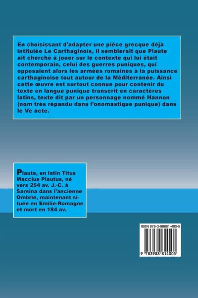 En choisissant d'adapter une pièce grecque déjà intitulée Le Carthaginois, il semblerait que Plaute ait cherché à jouer sur le contexte qui lui était contemporain, celui des guerres puniques, qui opposaient alors les armées romaines à la puissance carthaginoise tout autour de la Méditerranée. Ainsi cette ¿uvre est surtout connue pour contenir du texte en langue punique transcrit en caractères latins, texte dit par un personnage nommé Hannon (nom très répandu dans l'onomastique punique) dans le Ve acte.