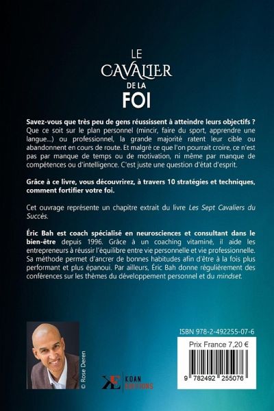 ★★★★★ Le Cavalier de la Foi (version homme): 10 stratégies et techniques pour atteindre ses objectifs Savez-vous que très peu de gens réussissent à atteindre leurs objectifs ? Que ce soit sur le plan professionnel ou personnel (mincir, faire du sport, apprendre une langue...), la grande majorité ratent leur cible ou abandonnent en cours de route. Et malgré ce que l'on pourrait croire, ce n'est pas par manque de temps ou de motivation, ni même par manque de compétences ou d'intelligence. C'est juste une question d'état d'esprit. Grâce à ce livre, vous découvrirez, à travers 10 stratégies et techniques, comment fortifier votre foi. Cet ouvrage représente un chapitre extrait du livre Les Sept Cavaliers du Succès.