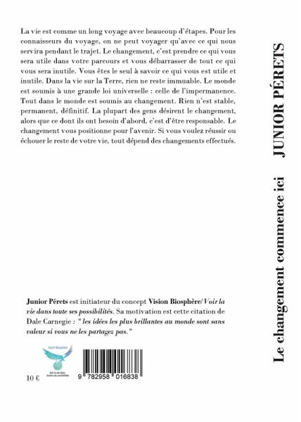 La vie est comme un long voyage avec beaucoup d'étapes. Pour les connaisseurs du voyage, on ne peut voyager qu'avec ce qui vous servira pendant le trajet. Le changement, c'est prendre ce qui vous sera utile. Vous êtes le seul à savoir ce qui vous est utile et inutile. Dans la vie sur la terre, rien ne reste immuable. Le monde est soumis à une grande loi universelle : celle de l'impermanence. Tout dans le monde est soumis au changement. Rien n'est stable, permanent, définitif. La plupart des gens désirent le changement, alors que ce qu'ils ont besoin d'abord, c'est d'être responsable. Le changement vous positionne pour l'avenir. Si vous voulez réussir ou échouer le reste de votre vie, tout dépend des changements effectués.