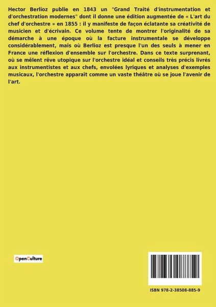 Hector Berlioz publie en 1843 un "Grand Traité d'instrumentation et d'orchestration modernes" dont il donne une édition augmentée de « L'art du chef d'orchestre » en 1855 : il y manifeste de façon éclatante sa créativité de musicien et d'écrivain. Ce volume tente de montrer l'originalité de sa démarche à une époque où la facture instrumentale se développe considérablement, mais où Berlioz est presque l'un des seuls à mener en France une réflexion d'ensemble sur l'orchestre. Dans ce texte surprenant, où se mêlent rêve utopique sur l'orchestre idéal et conseils très précis livrés aux instrumentistes et aux chefs, envolées lyriques et analyses d'exemples musicaux, l'orchestre apparaît comme un vaste théâtre où se joue l'avenir de l'art.
