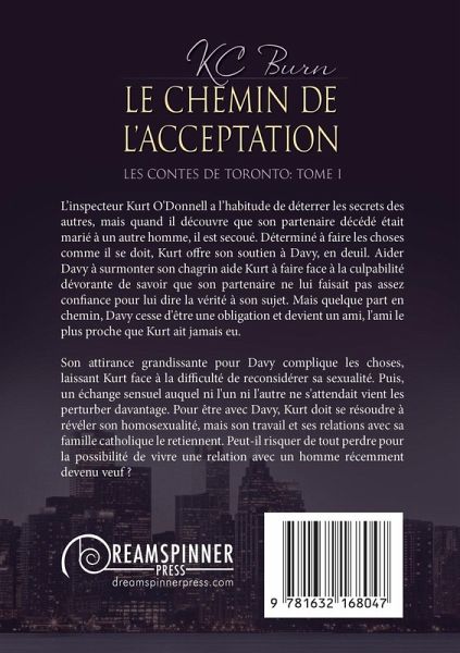 Les contes de Toronto, tome 1 L'inspecteur Kurt O'Donnell a l'habitude de déterrer les secrets des autres, mais quand il découvre que son partenaire décédé était marié à un autre homme, il est secoué. Déterminé à faire les choses comme il se doit, Kurt offre son soutien à Davy, en deuil. Aider Davy à surmonter son chagrin aide Kurt à faire face à la culpabilité dévorante de savoir que son partenaire ne lui faisait pas assez confiance pour lui dire la vérité à son sujet. Mais quelque part en chemin, Davy cesse d'être une obligation et devient un ami, l'ami le plus proche que Kurt ait jamais eu. Son attirance grandissante pour Davy complique les choses, laissant Kurt face à la difficulté de reconsidérer sa sexualité. Puis, un échange sensuel auquel ni l'un ni l'autre ne s'attendait vient les perturber davantage. Pour être avec Davy, Kurt doit se résoudre à révéler son homosexualité, mais son travail et ses relations avec sa famille catholique le retiennent. Peut-il risquer de tout perdre pour la possibilité de vivre une relation avec un homme récemment devenu veuf ?