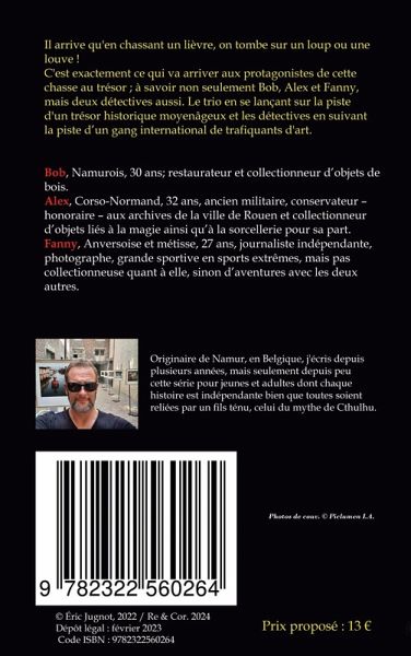 Après avoir fouillé une tombe en Artois, l'archéologue Greg Lamarche a découvert deux lettres dissimulées dans la couverture d'un livre d'Heures du 14e siècle. Découverte dont il a informé son ami Alexandre Beaumesnil, Alex donc. La première lettre a été rédigée par une certaine Dame Jeanne et relate l'histoire d'un trésor historique qu'elle a fait cacher par son confesseur. Quant à la seconde, il s'agit du message codé, par ce dernier, qui permet de localiser la cache, bien sûr. Par contre, ces lettres et ce livre ont été dérobés à Greg Lamarche. Ainsi, tandis que Bob et Alex partent sur la piste du trésor de cette mystérieuse Dame Jeanne, deux détectives européens se lancent-ils, pour leur part, à la poursuite d'un gang de voleurs international, dont l'un d'eux est probablement l'auteur du vol. Mais il arrive qu'en chassant un lièvre, on tombe sur un loup... ou une louve !