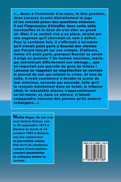 ... Assis à l'extrémité d'un banc, la tête penchée, Jean Lanouze écouta distraitement le juge et les avocats poser des questions oiseuses. Il eut l'impression d'étouffer dans cette salle surchauffée et le désir de s'en aller au grand air. Mais il se sentait rivé à sa place, étreint par une angoisse qu'il cherchait en vain à définir. Pour la centième fois, il s'affirmait à lui-même qu'il n'avait point parlé à Bourlat des vilenies que Pacard lançait sur son compte. D'ailleurs, même s'il avait parlé, pourquoi Bourlat se serait-il érigé en justicier ? Un homme soucieux, marié, qui entretenait difficilement son ménage... que lui importait une querelle de gens de lettres ! Lanouze se rappelait sa stupéfaction en ouvrant le journal du soir qui relatait le crime. Et tout de suite, il avait commencé à dévider la scène de leur entrevue, seconde par seconde, telle qu'il la revoyait maintenant dans un éclair, le tribunal aboli, le redoutable silence s'appesantissant en lui-même, et, dans ce silence, il faisait comparaître chacune des paroles qu'ils avaient échangées...