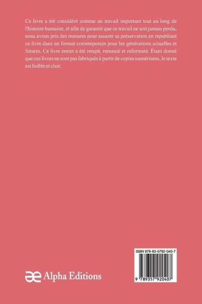 Le chevalier d'Harmental, un livre classique et rare qui a été considéré comme essentiel tout au long de l'histoire de l'humanité, pour que cet ouvrage ne soit jamais oublié, nous chez Alpha Editions avons fait des efforts pour sa préservation en rééditant ce livre dans un format moderne pour les générations présentes et futures. Tout ce livre a été reformaté, retapé et conçu. Ces livres ne sont pas constitués de copies numérisées de leur ¿uvre originale et le texte est donc clair et lisible.