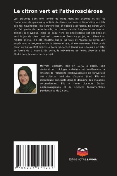 Les agrumes sont une famille de fruits dont les écorces et les jus contiennent de grandes quantités de divers nutriments biofonctionnels tels que les flavonoïdes, les caroténoïdes et l'acide ascorbique. Le citron vert, qui fait partie de cette famille, est connu depuis longtemps comme un aliment sain typique, mais sa peau riche en antioxydants est gaspillée et seul le jus de citron vert est consommé. Dans ce projet, en utilisant un modèle animal, il a été constaté que le jus frais et l'écorce de citron vert empêchent la progression de l'athérosclérose, et étonnamment, l'écorce de citron vert a un effet direct sur l'athérosclérose tandis que son jus a un effet en forme de U inversé. En outre, le mécanisme de l'effet observé a été étudié dans le cadre de ce projet.
