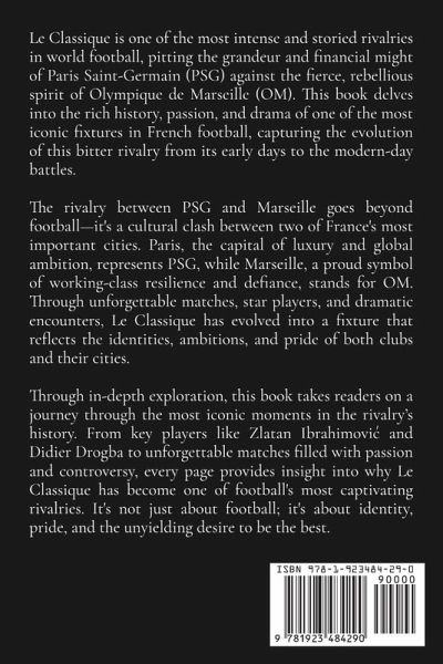 Le Classique is one of the most intense and storied rivalries in world football, pitting the grandeur and financial might of Paris Saint-Germain (PSG) against the fierce, rebellious spirit of Olympique de Marseille (OM). This book delves into the rich history, passion, and drama of one of the most iconic fixtures in French football, capturing the evolution of this bitter rivalry from its early days to the modern-day battles. The rivalry between PSG and Marseille goes beyond football-it's a cultural clash between two of France's most important cities. Paris, the capital of luxury and global ambition, represents PSG, while Marseille, a proud symbol of working-class resilience and defiance, stands for OM. Through unforgettable matches, star players, and dramatic encounters, Le Classique has evolved into a fixture that reflects the identities, ambitions, and pride of both clubs and their cities. Through in-depth exploration, this book takes readers on a journey through the most iconic moments in the rivalry's history. From key players like Zlatan Ibrahimovi¿ and Didier Drogba to unforgettable matches filled with passion and controversy, every page provides insight into why Le Classique has become one of football's most captivating rivalries. It's not just about football; it's about identity, pride, and the unyielding desire to be the best.