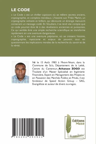 « Le Code » est un thriller captivant où se mêlent secrets anciens, cryptographie, et complots mondiaux. L'histoire suit Théo Martin, un cryptographe solitaire et brillant, qui découvre un étrange manuscrit contenant un message codé. En l'étudiant, il se rend vite compte que ce code pourrait être lié à des révélations anciennes et puissantes. Ce qui semble être une simple recherche scientifique se transforme rapidement en une aventure dangereuse.« Le Code » est une aventure palpitante, où se croisent histoire, cryptographie, mysticisme et enjeux de pouvoir, tout en questionnant les implications morales de la recherche du savoir et de la vérité.