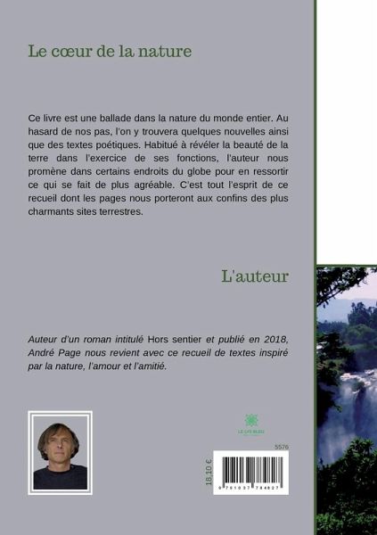 Ce livre est une ballade dans la nature du monde entier. Au hasard de nos pas, l¿on y trouvera quelques nouvelles ainsi que des textes poétiques. Habitué à révéler la beauté de la terre dans l¿exercice de ses fonctions, l¿auteur nous promène dans certains endroits du globe pour en ressortir ce qui se fait de plus agréable. C¿est tout l¿esprit de ce recueil dont les pages nous porteront aux confins des plus charmants sites terrestres.
