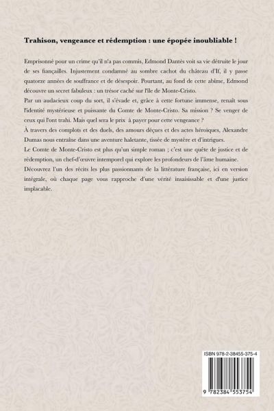 Trahison, vengeance et rédemption : une épopée inoubliable ! Emprisonné pour un crime qu'il n'a pas commis, Edmond Dantès voit sa vie détruite le jour de ses fiançailles. Injustement condamné au sombre cachot du château d'If, il y passe quatorze années de souffrance et de désespoir. Pourtant, au fond de cette abîme, Edmond découvre un secret fabuleux : un trésor caché sur l'île de Monte-Cristo.Par un audacieux coup du sort, il s'évade et, grâce à cette fortune immense, renaît sous l'identité mystérieuse et puissante du Comte de Monte-Cristo. Sa mission ? Se venger de ceux qui l'ont trahi. Mais quel sera le prix à payer pour cette vengeance ?À travers des complots et des duels, des amours déçues et des actes héroïques, Alexandre Dumas nous entraîne dans une aventure haletante, tissée de mystère et d'intrigues. Le Comte de Monte-Cristo est plus qu'un simple roman ; c'est une quête de justice et de rédemption, un chef-d'uvre intemporel qui explore les profondeurs de l'âme humaine.Découvrez l'un des récits les plus passionnants de la littérature française, ici en version intégrale, où chaque page vous rapproche d'une vérité insaisissable et d'une justice implacable.