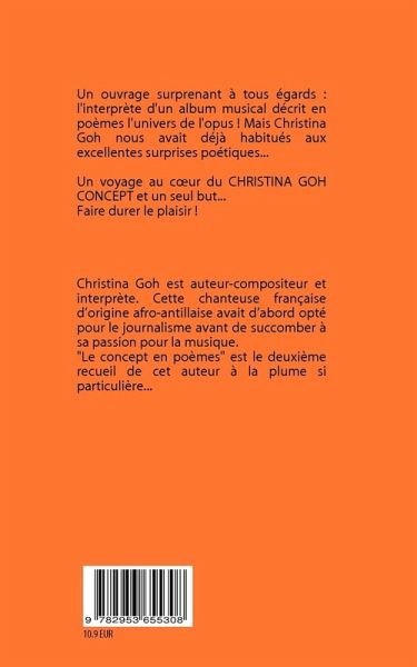 Ce recueil est une expérience inédite : chaque chapitre est une illustration poétique inspirée de l'album musical "Christina Goh Concept". Un voyage littéraire surprenant au c¿ur d'un univers unique !