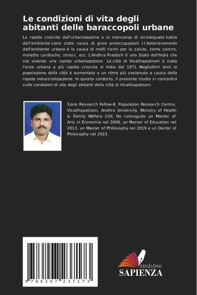 La rapida crescita dell'urbanizzazione e la mancanza di un'adeguata tutela dell'ambiente sono state causa di gravi preoccupazioni. Il deterioramento dell'ambiente urbano è la causa di molti rischi per la salute, come cancro, malattie cardiache, stress, ecc. L'Andhra Pradesh è uno Stato dell'India che sta vivendo una rapida urbanizzazione. La città di Visakhapatnam è stata l'area urbana a più rapida crescita in India dal 1971. Negliultimi anni la popolazione della città è aumentata a un ritmo più sostenuto a causa della rapida industrializzazione. In questo contesto, il presente studio si concentra sulle condizioni di vita degli abitanti della città di Visakhapatnam.