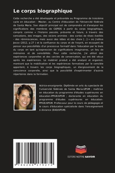 Cette recherche a été développée et présentée au Programme de troisième cycle en éducation - Master, au Centre d'éducation de l'Université fédérale de Santa Maria. Son objectif principal est de comprendre et d'analyser les significations des membres de GEPEIS à partir du corps biographique, compris comme « l'histoire passée, présente et future, à travers des sensations, des images, des visions animées - des sortes de rêves éveillés - des réminiscences, mais aussi des idées et des choix [...] » où j'utilise Josso (2012, p.27 ) et la confluence du corps et de l'esprit, en essayant de penser aux possibilités d'un processus formatif dans l'éducation par le biais du corps en tant qu'expression de significations imaginaires, un lieu de mémoires et de sensibilités. Pour cette recherche, j'ai utilisé des expériences corporelles et des cercles de conversation, qui ont été vécus après les expériences. Le matériel produit a été analysé et organisé, montrant que la mobilisation et les expériences formatives par le sensible apportent, à travers les corps biographiques, un élargissement de la conscience corporelle, ainsi que la possibilité d'expérimenter d'autres répertoires dans la formation.