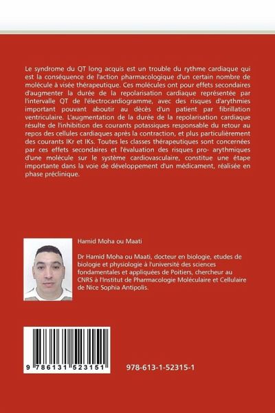 Le syndrome du QT long acquis est un trouble du rythme cardiaque qui est la conséquence de l'action pharmacologique d'un certain nombre de molécule à visée thérapeutique. Ces molécules ont pour effets secondaires d'augmenter la durée de la repolarisation cardiaque représentée par l'intervalle QT de l'électrocardiogramme, avec des risques d'arythmies important pouvant aboutir au dècès d'un patient par fibrillation ventriculaire. L'augmentation de la durée de la repolarisation cardiaque résulte de l'inhibition des courants potassiques responsable du retour au repos des cellules cardiaques après la contraction, et plus particulièrement des courants IKr et IKs. Toutes les classes thérapeutiques sont concernées par ces effets secondaires et l'évaluation des risques pro- arythmiques d'une molécule sur le système cardiovasculaire, constitue une étape importante dans la voie de développement d'un médicament, réalisée en phase préclinique.