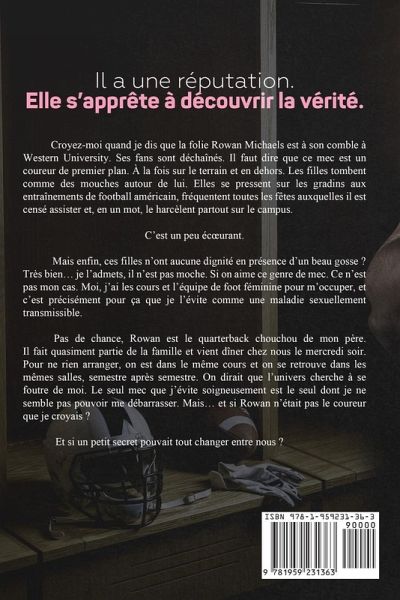 Il a une réputation. Elle s'apprête à découvrir la vérité. Croyez-moi quand je dis que la folie Rowan Michaels est à son comble à Western University. Ses fans sont déchaînés. Il faut dire que ce mec est un coureur de premier plan. À la fois sur le terrain et en dehors. Les filles tombent comme des mouches autour de lui. Elles se pressent sur les gradins aux entraînements de football américain, fréquentent toutes les fêtes auxquelles il est censé assister et, en un mot, le harcèlent partout sur le campus. C'est un peu éc¿urant. Mais enfin, ces filles n'ont aucune dignité en présence d'un beau gosse ? Très bien... je l'admets, il n'est pas moche. Si on aime ce genre de mec. Ce n'est pas mon cas. Moi, j'ai les cours et l'équipe de foot féminine pour m'occuper, et c'est précisément pour ça que je l'évite comme une maladie sexuellement transmissible. Pas de chance, Rowan est le quarterback chouchou de mon père. Il fait quasiment partie de la famille et vient dîner chez nous le mercredi soir. Pour ne rien arranger, on est dans le même cours et on se retrouve dans les mêmes salles, semestre après semestre. On dirait que l'univers cherche à se foutre de moi. Le seul mec que j'évite soigneusement est le seul dont je ne semble pas pouvoir me débarrasser. Mais... et si Rowan n'était pas le coureur que je croyais ? Et si un petit secret pouvait tout changer entre nous ?