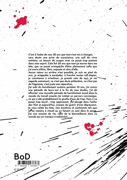 C'est à l'aube de mes 30 ans que tout s'est mis à changer, sans doute une prise de conscience, une soif de vivre extrême, un besoin de couper avec ce passé trop présent dans mon esprit. Cela fait 20 ans que tout ça tourne dans ma tête, que ce passé m'empêche d'être pleinement celle que j'ai envie d'être, libre, enjouée et sûre d'elle. Aucun retour en arrière n'est possible, je suis au pied du mur, je m'apprête à escalader, à franchir toutes ces étapes, je commence à m'estimer, je prends soin de moi, je me regarde autrement, ce n'est pas de la prétention, ce n'est pas de l'égoisme, c'est juste une réparation. J'ai subi du harcèlement scolaire pendant 10 ans, j'ai connu une période de burn-out à la fin de mes études, j'ai dû affronter une nouvelle période de harcèlement moral dans le monde du travail ensuite j'ai cotôyé un pervers narcissique, ce qui a été probablement la goutte d'eau de trop. Face à ce passé trop lourd , trop oppressant, j'ai plongé dans l'enfer des TCA et aujourd'hui, j'essaie de guérir d'une dépression. Alors, voilà, le décor est planté, vous allez me dire, mais tu es carrément déprimante, non ! Je vous relate les faits, mes émotions et sentiments tels que je les ressens à chaud ou en faisant un saut dans le passé. Et surtout j'aimerais vous faire comprendre que malgré tout ça, je ne suis pas un spécimen étrange, un cas à part et surtout que toutes les personnes qui ont un passé compliqué ont énormément à apprendre aux autres et sans doute une mission de vie, celle de diffuser de la bienveillance dans ce monde qui en manque cruellement hélas.