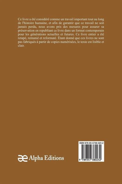 Le Crépuscule des Dieux, a été considérée comme importante tout au long de l'histoire de l'humanité. Dans un effort pour s'assurer que ce travail ne soit jamais perdu, nous avons pris des mesures pour assurer sa préservation en republiant ce livre dans un format moderne pour les générations actuelles et futures. Ce livre complet a été retapé, remanié et reformaté. Comme ces livres ne sont pas des scans des publications originales des auteurs, le texte est lisible et clair.