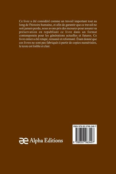 Le C¿ur chemine, un livre classique, a été considéré comme important tout au long de l'histoire de l'humanité, et pour que cet ouvrage ne soit jamais oublié, chez Alpha Editions, nous avons fait des efforts pour sa préservation en rééditant ce livre dans un format moderne pour les générations présentes et futures. Tout ce livre a été reformaté, retapé et conçu. Ces livres ne sont pas constitués de copies numérisées de leur ¿uvre originale et le texte est donc clair et lisible.