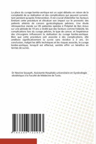 La place du curage lombo-aortique est un sujet débattu en raison de la complexité de sa réalisation et des complications qui peuvent survenir, tant pendant qu'après l'intervention. Il est crucial d'identifier les facteurs limitant cette procédure et d'évaluer son impact sur le pronostic des patients atteints de cancers gynécologiques pelviens. Une étude rétrospective menée sur 85 patientes opérées à l'hôpital de Ben Arous sur une période de 19 ans a révélé que des facteurs comme l'obésité, les complications lors du curage pelvien, le type de cancer, et l'expérience des chirurgiens influencent la réalisation du curage lombo-aortique. Bien que cette procédure soit associée à des complications, elle améliore significativement la survie sans récidive à 3 ans. En conclusion, malgré les défis techniques et les risques associés, le curage lombo-aortique, lorsqu'il est effectué, semble offrir un bénéfice en termes de survie.