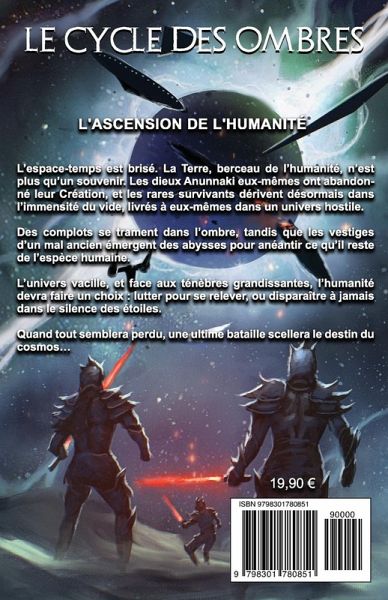 L'ascension de l'humanité L'espace-temps est brisé. La Terre, berceau de l'humanité, n'est plus qu'un souvenir. Les dieux Anunnaki eux-mêmes ont abandonné leur Création, et les rares survivants dérivent désormais dans l'immensité du vide, livrés à eux-mêmes dans un univers hostile. Des complots se trament dans l'ombre, tandis que les vestiges d'un mal ancien émergent des abysses pour anéantir ce qu'il reste de l'espèce humaine. L'univers vacille, et face aux ténèbres grandissantes, l'humanité devra faire un choix: lutter pour se relever, ou disparaître à jamais dans le silence des étoiles. >Illustré