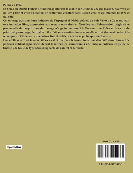 Un mystérieux personnage, le Diable Boiteux, se libère de sa prison et offre à son libérateur, Don Cléofas, une perspective inédite de Madrid. À travers les toits de la ville, le Diable dévoile les secrets et les vices cachés de ses habitants. Ce voyage fantastique, situé dans l'Espagne du XVIIIe siècle, est une satire sociale qui met en lumière les changements et les hypocrisies de la société madrilène. Le lecteur est transporté dans un monde où les apparences sont trompeuses et où les vérités les plus sombres sont révélées. Les thèmes de la vanité, de l'illusion et de la moralité sont habilement tissés dans cette uvre, offrant une critique acerbe des murs de l'époque. En suivant les aventures de Don Cléofas et de son guide diabolique, le lecteur est invité à réfléchir sur la nature humaine et les masques que chacun porte. Ce livre nous offre une perspective nouvelle sur la société, nous permettant de mieux comprendre les évolutions sociales et les comportements humains.
