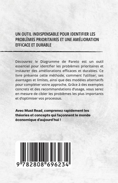 Découvrez le Diagramme de Pareto est un outil essentiel pour identifier les problèmes prioritaires et instaurer des améliorations efficaces et durables. Ce livre présente cette méthode, comment l'utiliser, ses avantages et limites, ainsi que des modèles alternatifs pour compléter votre approche. Grâce à des exemples concrets et des recommandations d'usage, vous serez en mesure de cibler les problèmes les plus importants et d'optimiser vos processus.